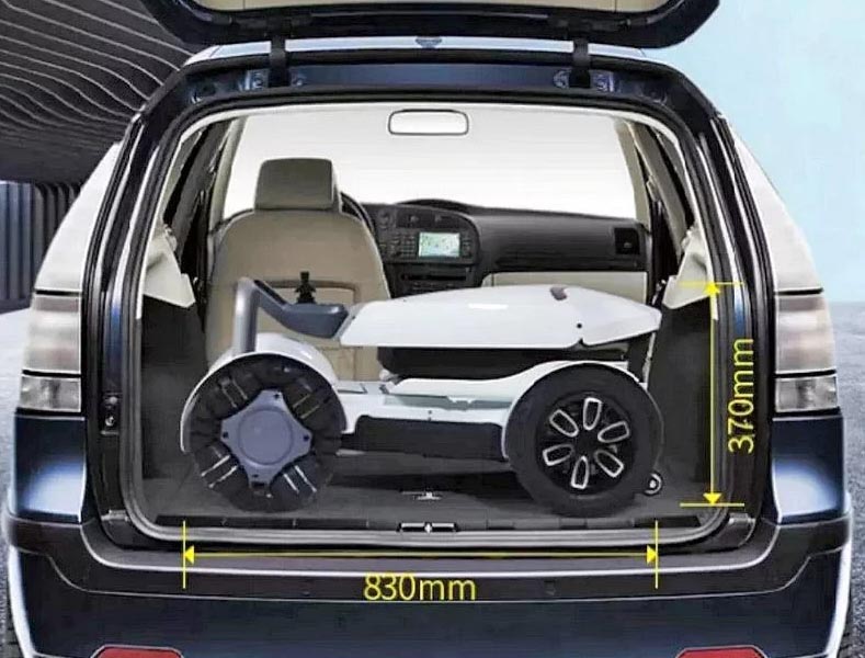 Il controllo wireless da remoto (APP) consente di dirigere la carrozzina nelle diverse direzioni, di aprirla e chiuderla.
