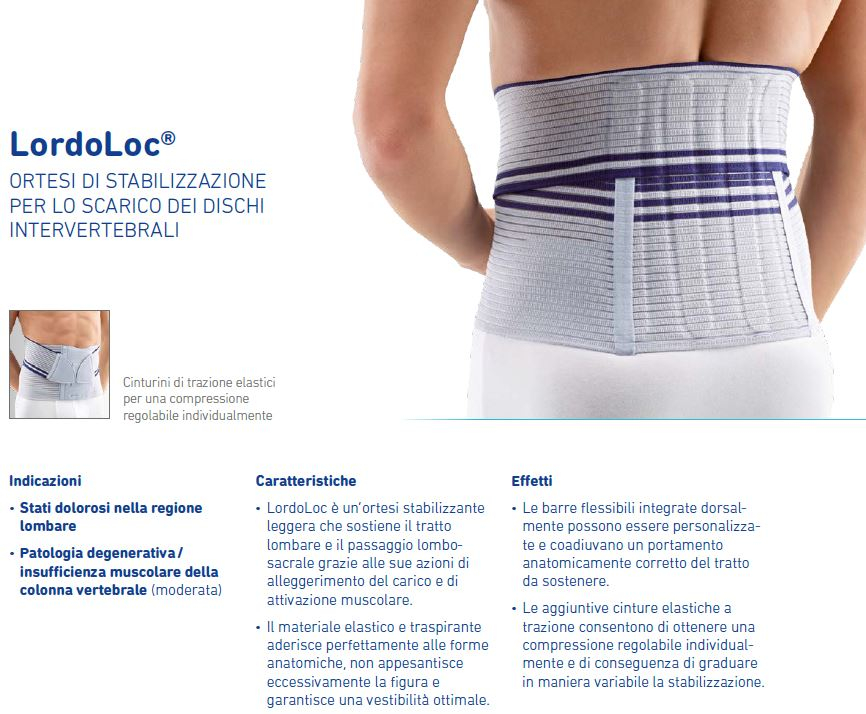 Busto corsetto di stabilizzazione e scarico della colonna vertebrale lombare.