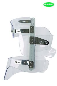 Le valve della presa di bacino, quelle ascellari e tutti i pressori sono regolabili tramite cerniere e barre di lega leggera. Il corsetto viene realizzato in materiale plastico trasparente indeformabile ad alta rigidità.