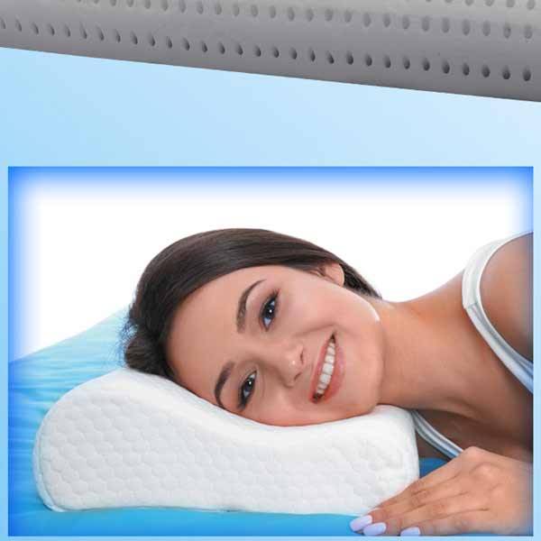 Ergonomico, assicura un comodo appoggio della testa e un equilibrato sostegno del collo e migliora l’allineamento delle vertebre cervicali favorendo una corretta postura durante il riposo.