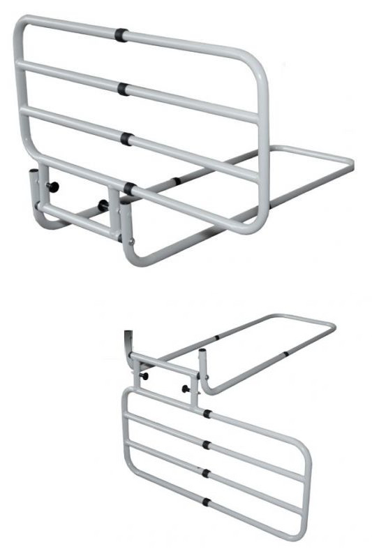 Modello universale singolo telescopico e ribaltabile, adattabile ai letti, da degenza e tradizionali, singoli e matrimoniali. Sponda per letto abbassabile pieghevole o asportabile con sistema di ancoraggio.